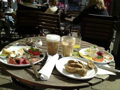 Natürlich haben wir beim zweiten Besuch nicht nur WGs gesucht, sondern auch ein wenig die Hamburger Lebensart im Sommer genossen. Größtenteils in Form von ausgezeichnetem Essen und Frühstück. So wie hier an einem Ort, an dessen Namen ich mich nicht mehr erinnern kann. Lässt mich irgendwie an Berlin Charlottenburg denken ;-)