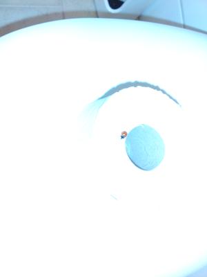 Seltsame Begegnung auf der Toilette im Keller. Ich hab den Kleinen natürlich nach draussen ins Grüne gebracht.