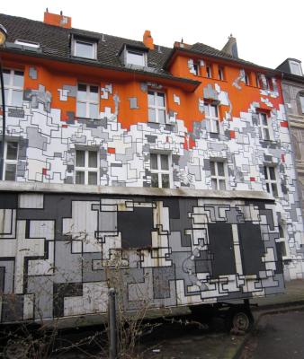 und in der Kiefernstrasse, Düsseldorfs Hafenstrasse, die mittlerweile zur Hälfte streetartmässig aufbereitet wurde,