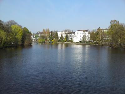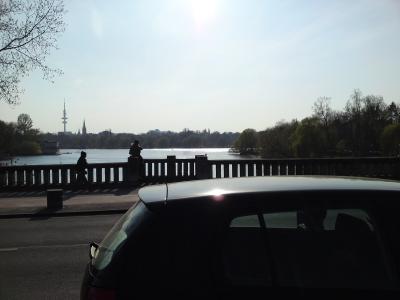 Ich freute mich kurz über die Aussicht vor meinem Haus (Winterhude).