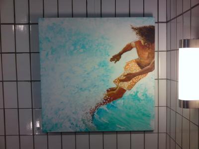 Auf meinen Reisen in die Heimat begegnen mir durch den neuen Blick des Quasitouristen auch in meiner Neststadt immer wieder neue Eindrücke, die ich für interessant halte. Zum Beispiel stellt im Badehaus an der Münsterstrasse eine Künstlerin aus, von denen eins mich in action zeigt ;-)